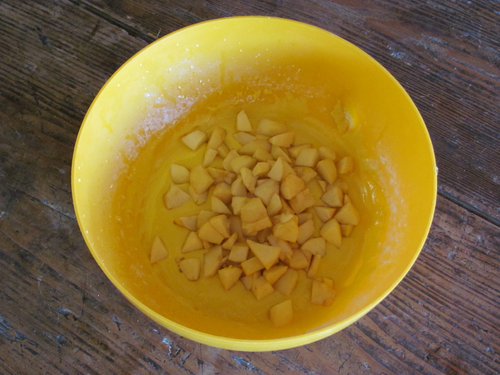 Pelez les pommes, coupez les en dés grossiers, réservez au frais.